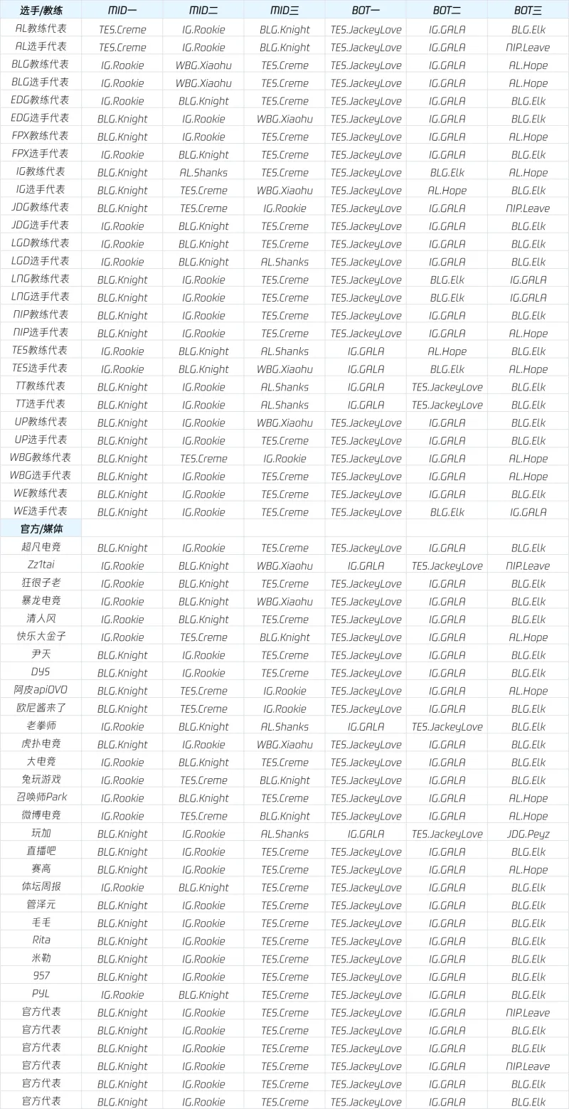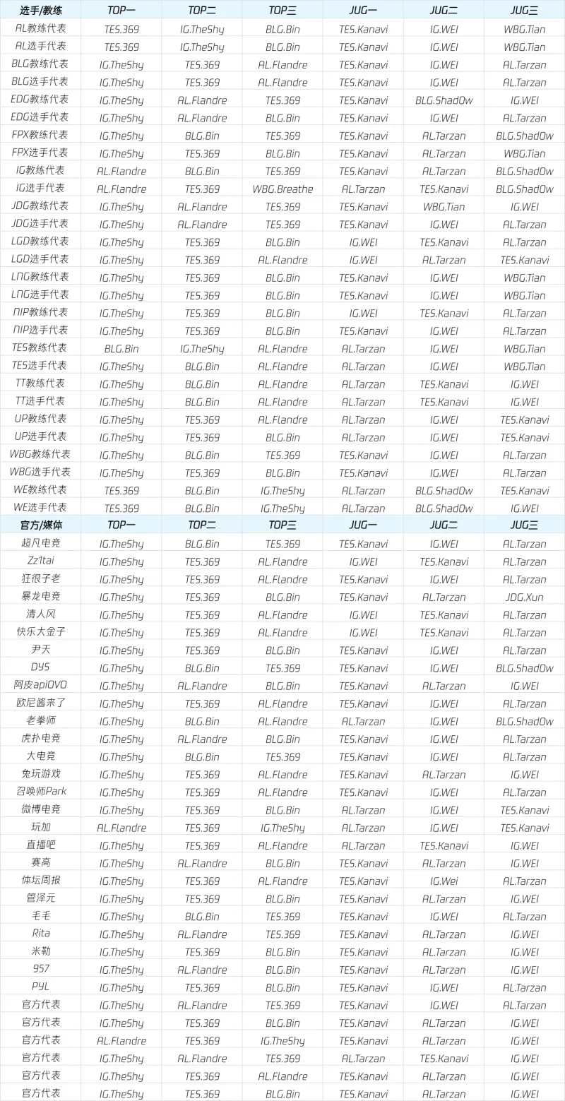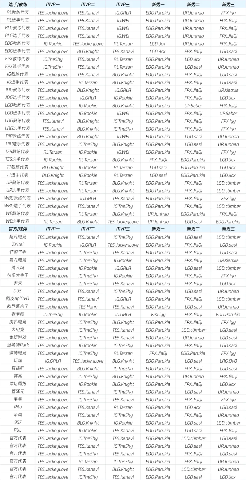 虎扑09月06日讯 LPL公布常规赛荣誉选票明细,以下是具体内容: